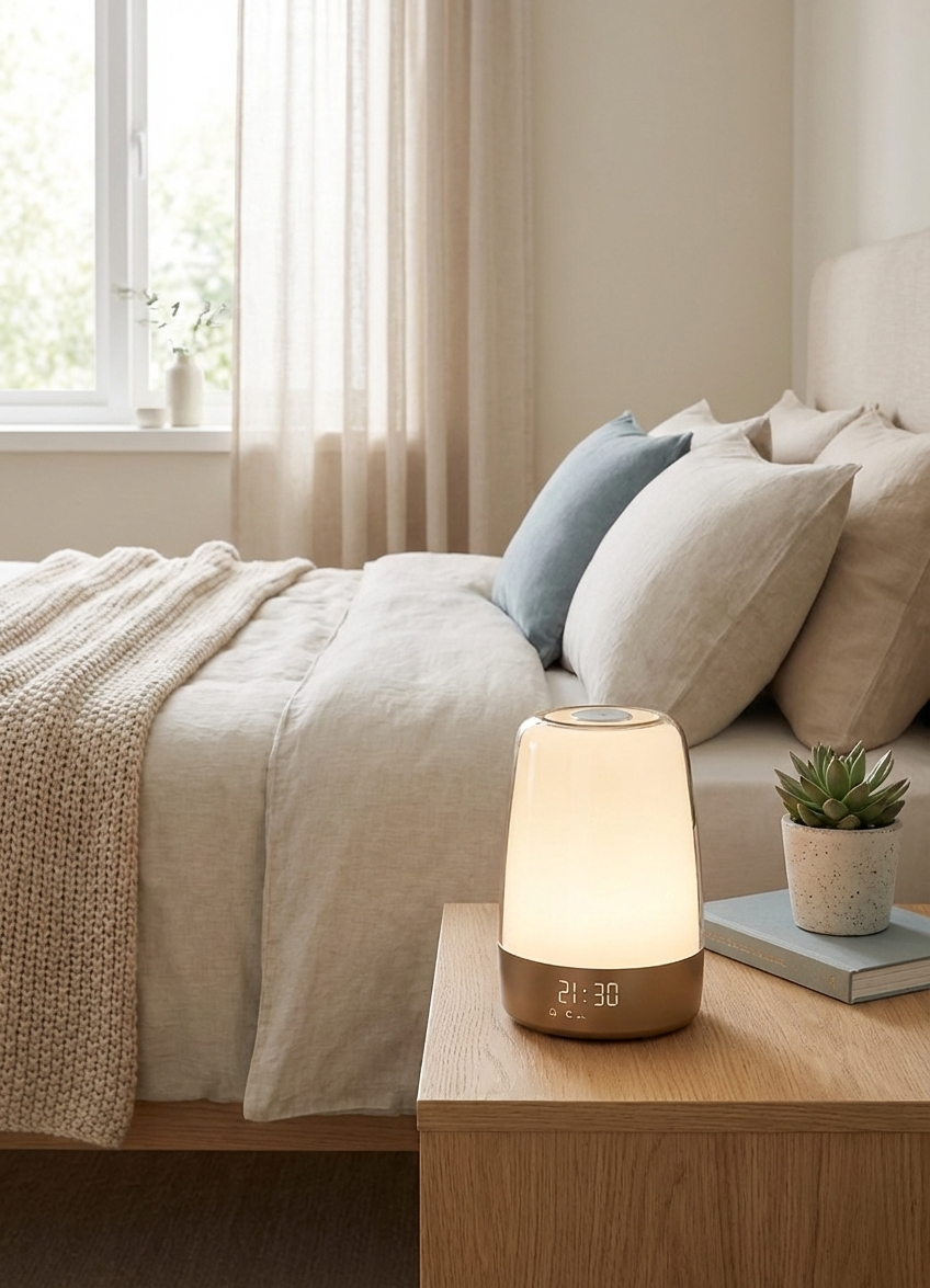 Experience the gentle embrace of dawn with our sophisticated sunrise wake-up lamp, designed to transform your daily rituals into moments of tranquil awakening.